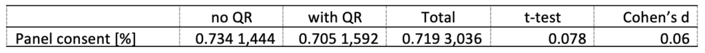 H7: A QR code will lead to a lower panel consent rate, as per H6.